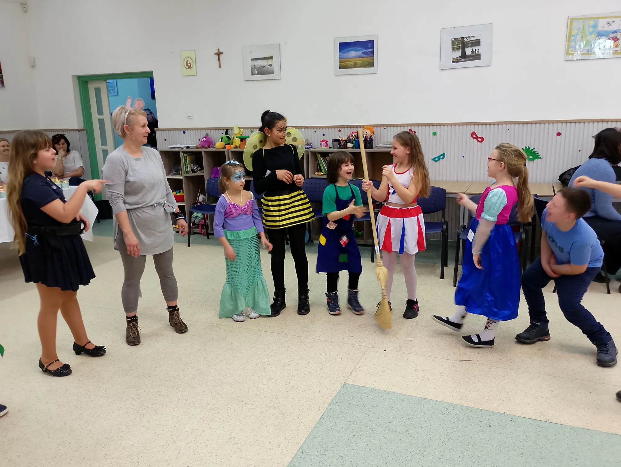 Február 13-án vidám farsangi ünnepséget szerveztünk ellátott gyermekeink számára.